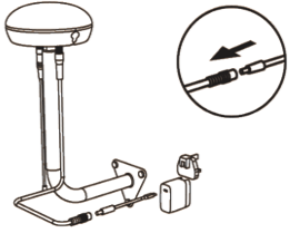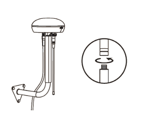 - Install the straight mounting pole, radio antenna, and power supply cable (5cm) on the RTK base station.