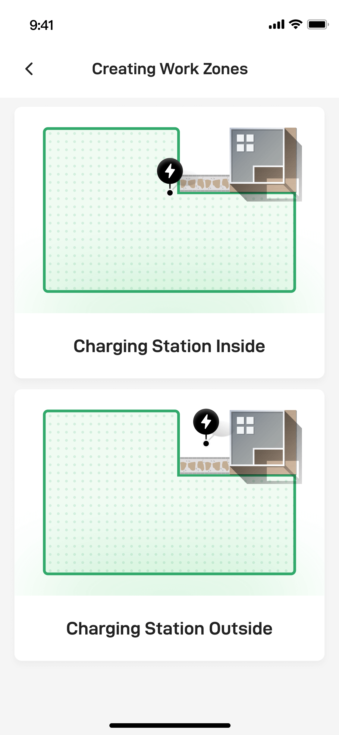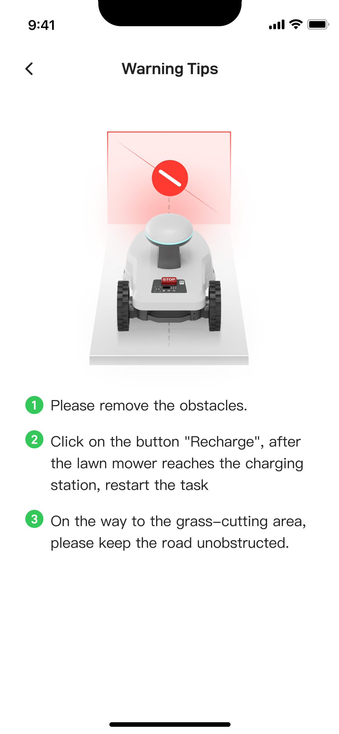 - Make sure the grass under the charging station plate is not taller than 5cm (about 2 inches).