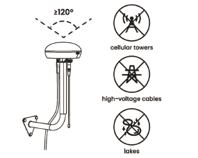 - Ensure the RTK reference station in pointing upwards and there are no obstructions in 120°section of the sky.