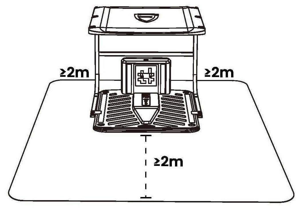 - Leave a free level area with a radius of at least 2m in front of the charging station, free of hills, inclines, depressions, holes, or obstacles.