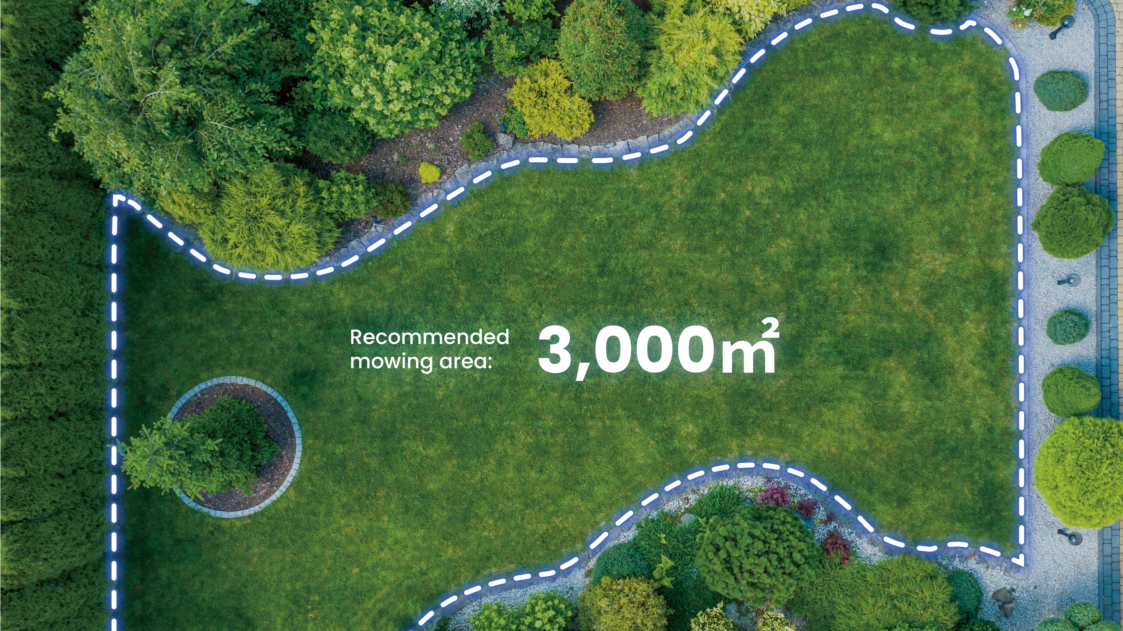 The FL3000 robotic mower is designed for areas up to 3,000 m² (0.75 acre), making it ideal for medium to large lawns and spacious gardens.